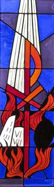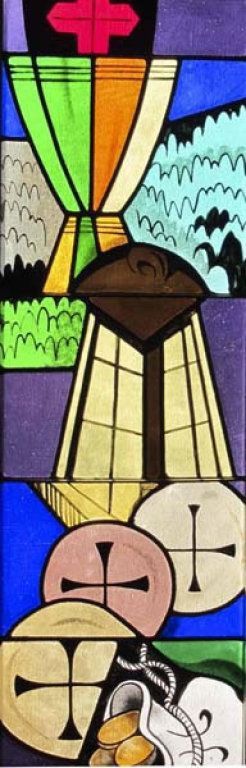 In 1977, under the guidance of Father Leon Bonin, stained glass windows replaced the clear glass windows in the present church building of St. Pius V. The stained glass images depict Christ's life from birth through His ascension into heaven.